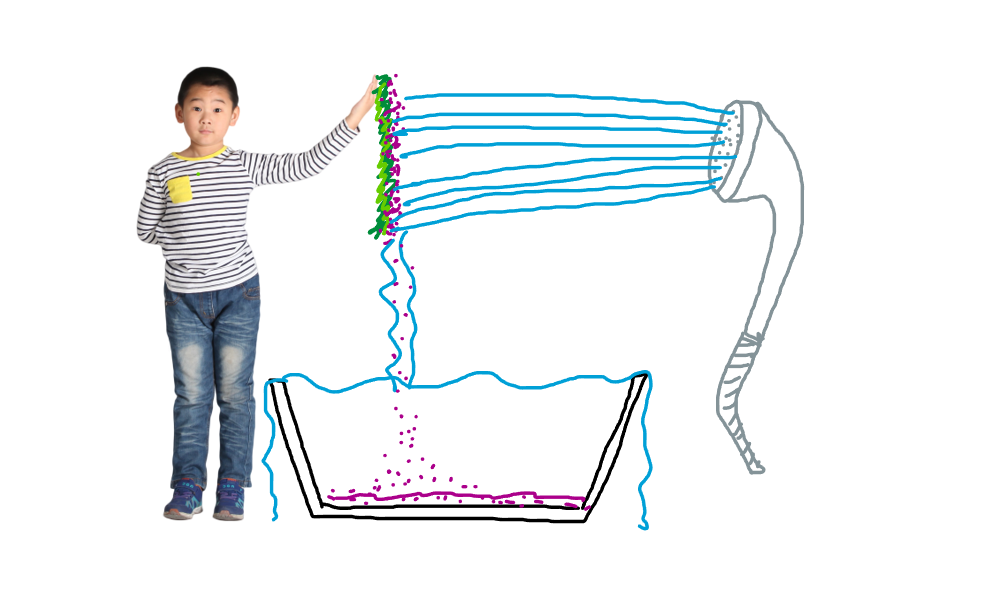 아래에 큰 통을 놔두고 물을 뿌려 수직으로 통에 떨어지게 해 주면